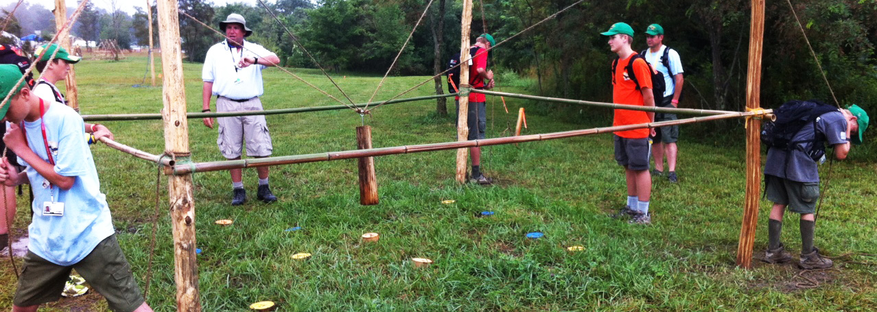 This activity is so named because it’s supposed to simulate the manipulation of radioactive graphite discs in an atomic pile. Like all good team building challenges, it requires concentration, cooperation, and strict attention to the Scout who’s calling the signals.