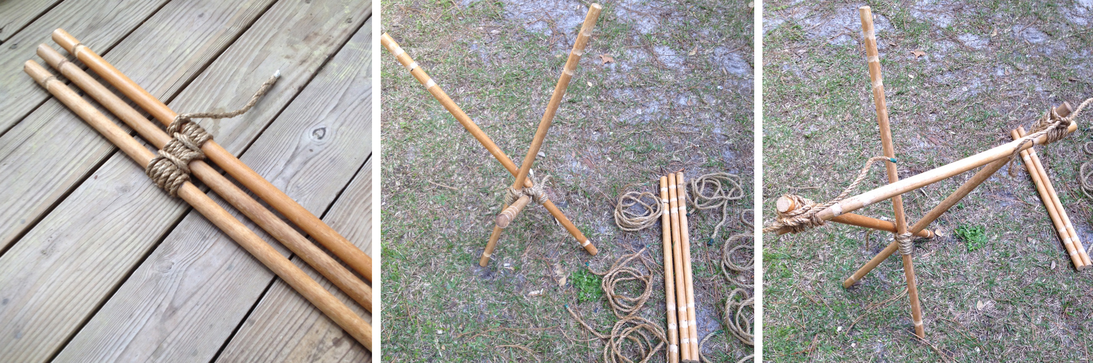 - six 6-foot lengths of binder twine for the square lashings -or- six 6-foot lashing ropes