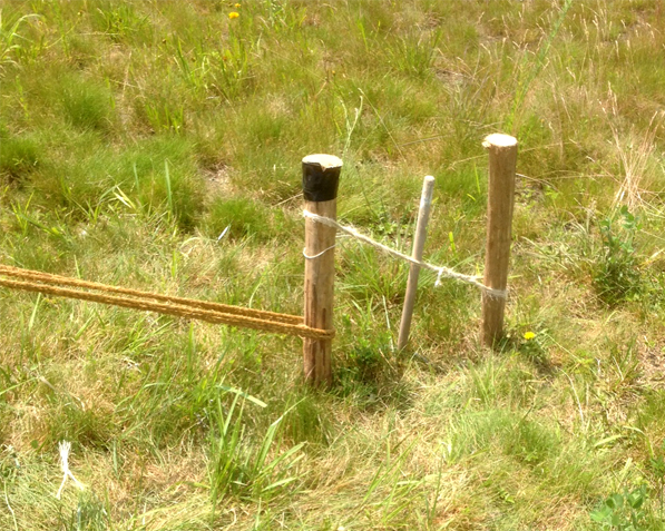 - three 10-foot x 3-inch pine spars (upright support poles)