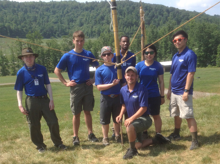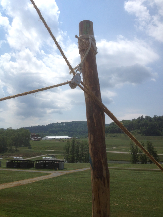 General Comment: This is a ‘tricky’ setup, but it worked out great, was very cool to look at, ‘was fairly stable, and very much do-able, with a few basic skills. Hopefully our troop will get better at this and set it up for the next district Camporee! Knowing how to tie a proper Rolling Hitch (and with a bight) is critical (which is simply a round turn then into a Clovehitch, the extra round turn needs to on the side of the applied load, up on bottom and down on the tops).
