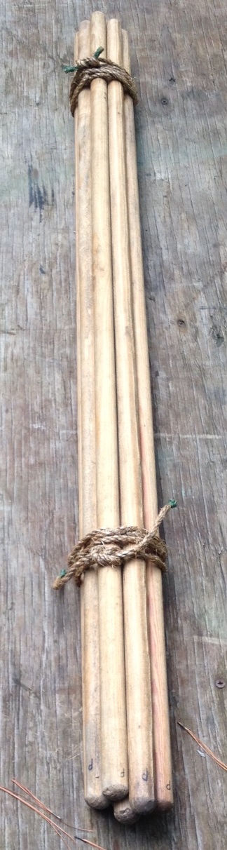 “The Scout staff is a strong stick about as high as your nose, marked in feet and inches for measuring. The staff is useful for all sorts of things, such as making a stretcher, keeping back a crowd, jumping over a ditch, testing the depth of a river, keeping in touch with the rest of your Patrol in the dark. You can help another Scout over a high wall if you hold your staff horizontally between your hands and make a step for him; he can then give you a hand from above. Several staves can be used for building a light bridge, a hut or a flag staff. There are many other uses for the staff. In fact, you will soon find that if you don’t have your staff with you, you will always be wanting it. If you get the chance, cut your own staff. But remember to get permission first.”