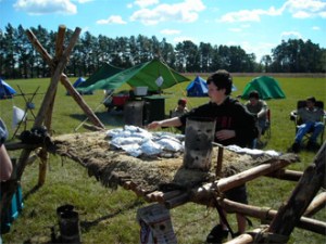 Building rafts stands out as one of the most fun-filled Scout Pioneering activities. It incorporates all the planning, preparation, and Scout engineering aspects that contribute to the richness of the experience, but inherent in a successful outcome is also the pronounced element of success when the structure can float and actually carry the participants. Through the years, raft building has played a major role in pioneering activities, and thanks to the often hilarious exploits of John Thurman, during his extended term as Camp Chief at Gilwell, in the Scouting scheme of things, the creative process of designing, building, and riding a raft is part of a rich Scout Pioneering heritage. (Read more.)