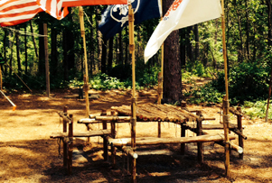 What is wonderful about this table is how sturdy it is for seating, eating and meeting. In many respects, this can become the campcraft area’s figurehead—the design being so impressive and the attraction to sit in it being so strong. The structure is so sound, when Scouts throughout camp visit the Scoutcraft area they have to be instructed not to stand on the table top, but instead to treat it as a piece of furniture and not a jungle jim. (Read more.)