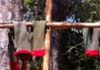 Forked Stick Cross BarFORKED STICKS & CROSSBAR – It’s a sight right out of the old frontier and it’s easy to make—two forked sticks with a crossbar from which pots are suspended for boiling water and cooking food.