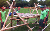 The pioneering area featured a specially designed pre-stressed triple walkway bridge, along with a modified Double A-Frame Monkey Bridge and an opportunity to build a Single A-Frame crossing bridge! Click HERE