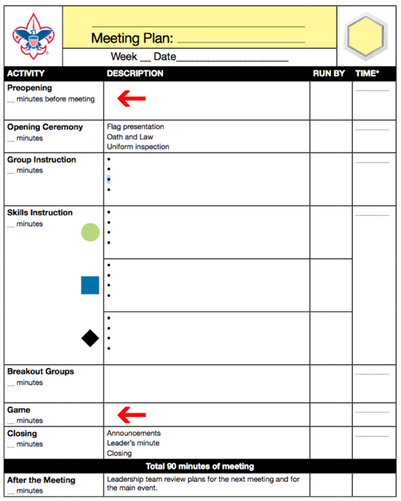 As part of their regular troop meeting planning process, the troop’s planning team should prepare meaningful challenges and enjoyable games that will favorably engage the members of the troop. Whether it’s a Scout Skill Challenge, Team Building Opportunity, or a Patrol or Troop Game, whenever possible and appropriate, the chosen activity should be featured as part of the troop meeting’s agenda.