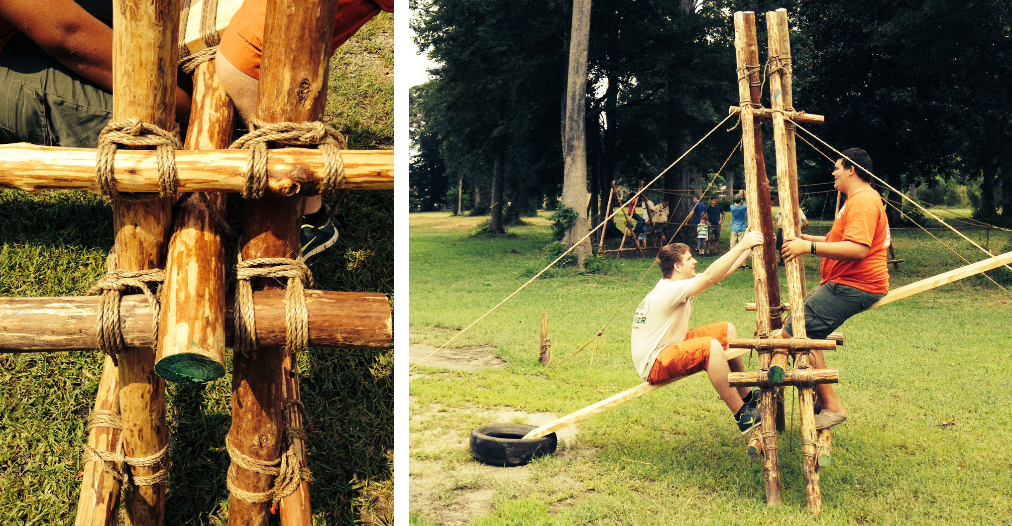 Scout Pioneering is about building structures with poles and rope. They can be useful, they can be for fun, and often they’re both. Knowing how to tie knots and lashings is a basic Scouting skill that’s been a part of our movement for over a hundred years. In all bonafide Scout Pioneering settings, when two poles cross each other, but do not touch, a Diagonal Lashing is often used to spring the poles together. The lashing is so-named, because the wraps run diagonal to the poles. Additionally, those who are experienced in building pioneering structures accept the fact that joining two poles together that cross from 45º to 90º calls for a Square Lashing. There’s more contact between the rope and the poles than with a Diagonal Lashing, and hence a Square Lashing provides a better hold. The Square Lashing gets its name from the fact the wraps run square to the poles. The name has nothing to do with at what angle the poles cross.
