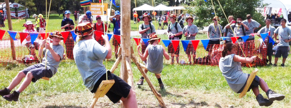 The carousel has been a mainstay for the past several jamborees. Because it was so much fun to ride, there was often a line of Scouts and Venturers waiting their turn to get on board. Click HERE
