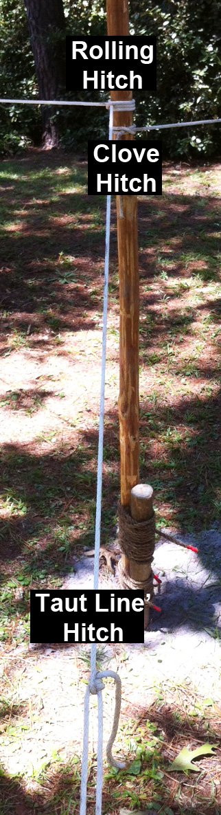 Repeat the process with the other three 25-foot cords, starting with a clove hitch tied right next to the rolling hitch.