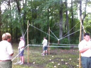 Putting up an Atomic Pile activity is well within the capability of most patrols, and by dividing the tasks, can be completed in under 30 minutes. However, building the Atomic Pile is not as key to team building and leadership development as is actually using the structure.