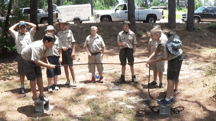 – Scoring: The Scout left standing the longest on his platform while still holding onto his rope wins. If a Scout lets go of the rope, he’s out, even if he’s still standing on his platform.